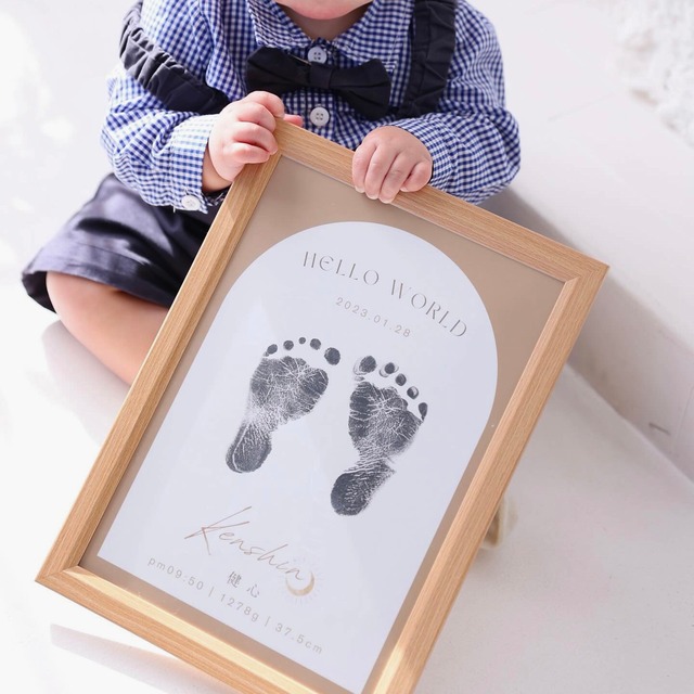 Hello World!♥︎ A5,A4サイズが選べるbaby poster A4サイスは一般的な大きめサイズ、 A5サイズ(A4の半分)は、 生後1ヶ月くらいまでの赤ちゃん向けの コンパクトな足型ポスター♥︎ ※足形のサイズが収まりきらない等 お客様のご都合によります返品交換は致しかねますので サイズが不安な場合はA4サイズをご選択ください。 ⭐︎ 画像6.7.8.9枚目→A5ポスター、 モデルの赤ちゃんは 生後2週間、足のサイズは8cmです _______________________ シンプルで可愛らしいデザインをお探しのmamaにぴったり Jayme.original足形ベビーポスター⺌ 画像9枚目の状態でお送りいたしますので お客様ご自身でスタンプして完成させてください☺︎ ↪︎2枚入りですので、 おじいちゃんおばあちゃんへプレゼントしたり 押し直し用としてもお使いください。 3枚目以降は1枚追加ごとに¥500でお作りいたします。 ▪︎サイズ...A5orA4 ▪︎厚手(一般的な写真の厚さ) ▪︎内容‥.ポスター2枚 ※フレーム別売り ※3枚目からは 【ベビーポスター(手足型)1枚追加ページ】 (1枚追加/¥500) を同時に購入お願いいたします。 ▪︎ご注文方法 ご購入の際備考欄に お子様の ①お名前(ローマ字・漢字) ②西暦生年月日(2020/01/01) ③生まれた時間(am.pm12時間表記) ④出生時の体重 ⑤出生時の身長 を必ずご記入ください。 例) Sakuto 朔夜 2023/07/01 03:18am 2748g 47cm ※備考欄に書き忘れた場合はLINEへお送りください ご記入頂いた内容でお作りいたしますので お間違いのないよう、お願いいたします。 __________________ ※フレーム、インクは別売りです。 __________________ ⚠︎ caution⚠︎ •折り曲げ、水濡れ厳禁 •変形や色あせの原因となる場合がございますので 直射日光や湿気の多い場所での保管は避けてください 長くお楽しみいただけるようお取り扱いにご注意ください。 —————————————————————— ママ達の気持ちを乗せて作るJayme.SHOPの商品は あなたが持つことで価値が生まれると思っております。 お客様の手に渡った時に どんなハイブランドよりも価値があると思っていただける そんな商品を作りたくて日々企画、製作をしております♡